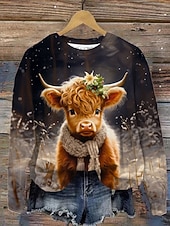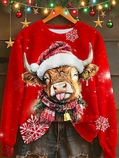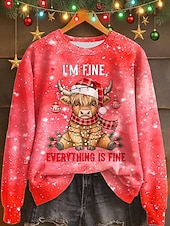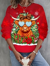 Swteter pulower z kocim motywem na Święta dla kobiet casual z długim rękawem okrągły dekolt regularne topy na ulicę codzienne noszenie casual czarny żółty wino czerwony niebieski wiosna jesień zima