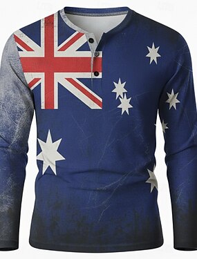 Męskie Flaga Australia Koszula Henley Długi rękaw Moda Śłodkie Codzienny Codzienny Święto Wyjściowe Wiosna i jesień Na każdy sezon Niebieski Henley Koszulka Henley