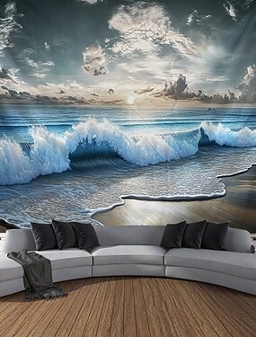 Krajobraz Niebieski Ocean Wiszący Tapestry Sztuka Ścienna Duży Tapestry Mur Decor Fotograficzne Tło Koc Zasłona Dekoracja Domu Sypialni Salonu