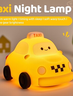 Taksówka z miękkiego silikonu, słodka, kreskówkowa lampka nocna, świąteczna, noworoczna, urodzinowa, prezent na święta, do sypialni, nastrojowa, z możliwością ładowania przez USB, ściemnialna