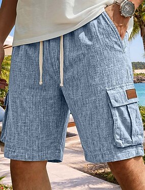 Męskie Spodenki cargo Lniane szorty Letnie szorty Szorty plażowe Ściągana na sznurek Elastyczny pas Multi Pocket Równina Komfort Oddychający Do kolan Codzienny Na zewnątrz Święto Urlop Moda Niebieski