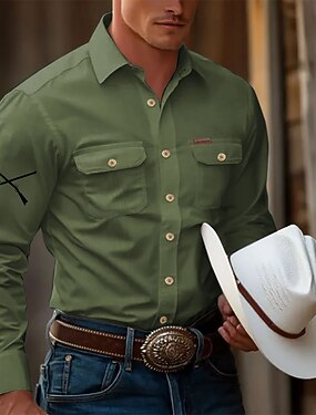 Męskie Skrzyżowane strzały Koszule robocze Koszula westernowa Koszula cargo Długi rękaw Taktyczna Vintage Retro Sporty na świeżym powietrzu Odzież robocza Wiosna Jesień Wieczorne Dwie kieszenie z