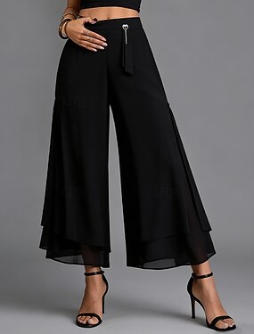 Damskie Spodnie Spodnie codzienne Letnie spodnie Elegancja Moda Codzienne Do kostek Wysoka talia Jednokolorowe Równina Wielowarstwowy Spodnie szerokie nogawki Elastyczny pas Komfort Lekki Miękka