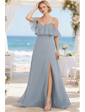 Krój A Sukienka dla druhny Cienkie ramiączka Bez rękawów Elegancja Sięgająca podłoża Szyfon z Falbany / Marszcząca się