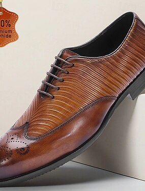 Brązowe, męskie buty typu brogue oxford z fakturą jaszczurki – najwyższej jakości, sznurowane buty wizytowe ze skóry bydlęcej na wesela, do biura i na oficjalne okazje