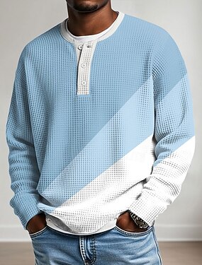 Męskie Geometryczne Koszulka waflowa Koszula Henley Długi rękaw Elegancja Codzienny Wiosna Jasnozielony Jasnoniebieski Fioletowy Khaki Henley Koszulka Henley