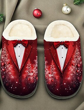 Męskie kapcie świąteczne w stylu smokingu - klasyczny wzór smokingu, kapcie z podszewką z futerka dla mężczyzn, w świątecznym stylu, na przyjęcia bożonarodzeniowe, do wypoczynku i jako prezent świąteczny