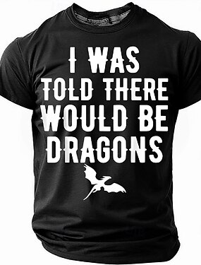 Męska koszulka z grafiką 'Mówiono mi że będą smoki' - zabawna koszulka fantasy z krótkim rękawem