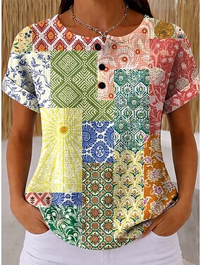 Koszulka damska Waffle z teksturowanego dzianiny T-Shirt kolor blokowy nadruk graficzny kwiatowy geometryczny stylowa klasyczna krótki rękawek okrągły dekolt codzienna sportowa niebieska królewska