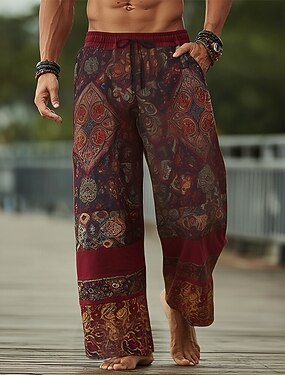 Męskie W Tureckie Wzory Kwiatowy wzór Etnické Spodnie Spodnie codzienne Luźne spodnie Średni Talia Vintage Retro Dom Na zewnątrz Urlop Elastyczny pas ściągany sznurkiem Spodnie lniane z kieszeniami