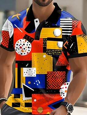 Męskie Geometryczny Tenké Gra polo Krótki rękaw Koszulki polo Koszule z kołnierzykiem Codzienny Na zewnątrz Athleisure Dzienne zużycie Druk 3D Guziki Lato Niebieski Czerwony Fioletowy