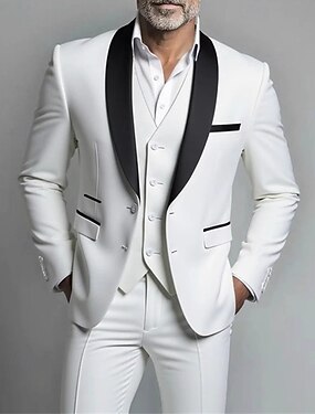 Męskie Marynarka + kamizelka + eleganckie spodnie Marynarka Biznes Praca Impreza Moda Moda miejska Jesień Zima Terylen Kolorowy blok Guziki jednorzędowe Blezer Biały Szampański Jasnozielony Rumiany