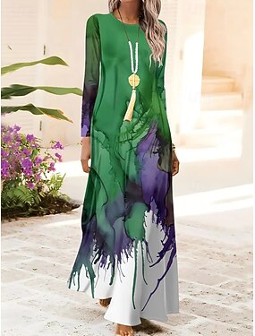 Damskie Sukienka maxi Sukienka trapezowa Sukienka A line Impreza Codzienny Boho Codzienny Randka Wyjściowe Regularny Kwiaty Graficzny Wzór tie-dye Długi rękaw Półgolf Niebieski Jasnozielony Rumiany