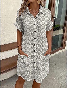 Damskie Sukienka mini Sukienka koszulowa Codzienne sukienki Sukienka z nadrukiem Moda Nowoczesny Codzienny Plaża Weekend Regularny Graficzny Krótki rękaw Kołnierzyk koszuli Szary Lato Wiosna Jesień