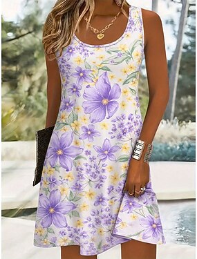 Damskie Sukienka do kolan Sukienka letnia Sukienka A line Letnie sukienki Urlop Codzienny Boho Plaża Impreza Ślub Regularny Kwiaty Graficzny Bez rękawów Dekolt w kształcie litery U Fioletowy Zielony