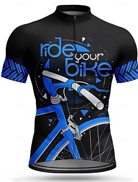 Męskie Koszulka rowerowa Geometryczny Rower Krótki rękaw Rower Dżersej Top z 3 tylnymi kieszeniami Odporny na UV Szybkie wysychanie Z kieszeniami Suwak przedni Sport Niebieski Odzież