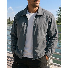 Męskie Lekka kurtka Koszula kurtka Zwykła kurtka Szałat Urlop Codzienny Oddychający Kieszeń Wiosna Jesień Równina Moda Klasyczny Klapa Regularny Ciemnoniebieski Kurtki