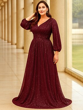 sukienka na przyjęcie długości podłogi w stylu A-linii sukienka na wesele sukienka dla matki panny młodej długi rękaw dekolt V elegancka vintage plus size spandex z plisami i cekinami