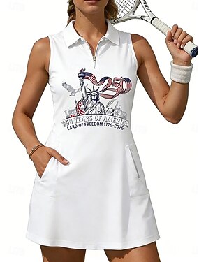 Dzień Niepodległości 250. rocznica powstania Ameryki Damskie Graficzny Sukienka sportowa Sukienka polo do tenisa Bez rękawów Quarter Zip Elastyczny Odvádí pot Oddychający Siatkówka Bransoletka