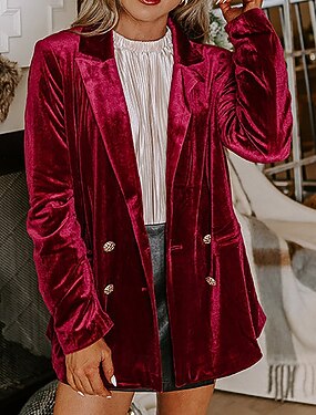 Damskie Aksamitne marynarki Wygodny Guziki Elegancja Elegancki Retro / vintage Praca Równina Praca Codzienny Święto Wyjściowe W serek Luźna Długi rękaw Odzież wierzchnia Czarny Wino Zielony Wiosna
