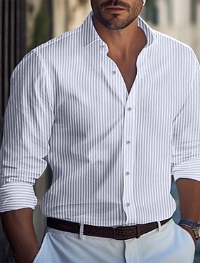 Męskie Koszula Koszule eleganckie Codzienna koszula Zapinana na guziki koszula Pionowe paski Ślub Na zewnątrz Biały Rumiany róż Niebieski Błękit nieba Długi rękaw Lato Wiosna Odzież