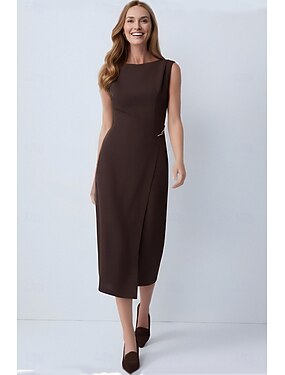 Damskie Sukienka smokingowa Osłona Biznes Biuro Praca Rozciągliwa krepa Elegancja Bez rękawów Łódeczka Francuska