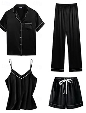 Damskie Odzież domowa Zestawy piżamowe Moda Prosty Codzienny Czyste kolory Satynowa jedwabna piżama Elastyczny pas Krótkie spodnie Dom Urlop Krótki rękaw Kołnierzyk koszuli Niebieski Czarny Biały