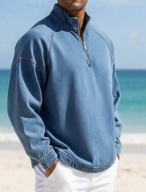 Męskie Koszula ze 100% bawełny Acid Wash Koszulka Długi rękaw Kołnierz stawiany Jesień i zima Wiosna Jesień Równina Zabytkowe Moda miejska Codzienny Zapiąć na zamek błyskawiczny Farbowane ubranie