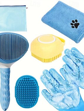 Zestaw 6 szczotek do kąpieli dla psów Zestaw 6 szczotek do kąpieli dla psów z ręcznikiem &rękawice do mycia śliska szczotka do pielęgnacji włosów do usuwania szamponu szorowarka dla psów i kotów