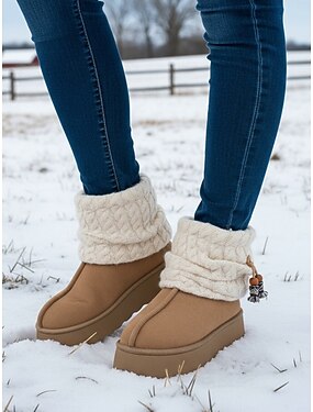 Damskie, dzianinowe buty zimowe z podszewką z polaru – wygodne i ciepłe, idealne na śnieżną pogodę i aktywności na świeżym powietrzu