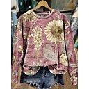 damski sweter z nadrukiem kwiatowym, modny, swobodny, luźny krój, okrągły dekolt, długi rękaw, nieelastyczny, wiosna, jesień, wygodny, oddychający, miękki materiał |
