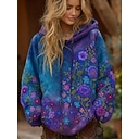 Kobieta 3D Print Vintage Boho Hoodie Patchwork Hoodie Sweatshirt Kwiatowy Zapinany na Zamek Vintage Moda Casual Długi Rękaw z Kapturem Ulica Codzienna Casual Patchwork Kieszeń Czerwony Niebieski |