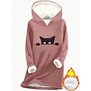 Damskie Bluza z kapturem i bluzą Nadruk Graficzny Zwierzę Ciepłe Codzienny Polar Sherpa Długi rękaw Kaptur Długie topy Codzienny Ulica Na co dzień Niebieski Ciemnoróżowy Szary Jesień Zima |