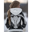 Damskie Bluza z kapturem i bluzą Niejednolita całość Nadruk Przednia kieszeń Graficzny Zwierzę Geometryczny Zabytkowe Codzienny Boho Długi rękaw Kaptur Zwykłe topy Codzienny Ulica Na co dzień Czarny |