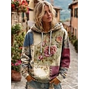 Kobieta 3D Print Vintage Boho Hoodie Patchwork Hoodie Sweatshirt Kwiatowy Pulower Sweatshirt Oversized Casual Ciepły Aktywny z Kapturem Ulica Codzienna Patchwork Różowy Wiosna Jesień Zima |
