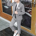 Garnitur dla chłopców w wieku 2-8 lat!& marynarka zestaw spodni formalny zestaw 2 sztuki z długim rękawem szary granatowy w kratę bawełniana impreza formalny delikatny garnitur |