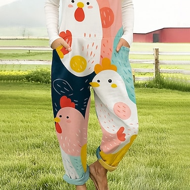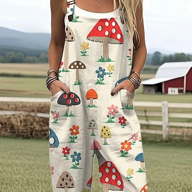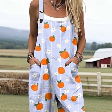 Kobiece ogrodniczki 100% bawełniane Aktywne graficzne Bez rękawów Proste z dekoltem kwadratowym z kieszeniami na wakacje Codzienny luźny krój Biały niebieski zielony latem