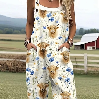 Kobiece ogrodniczki 100% bawełniane Aktywne w kwiaty Bez rękawów Proste z dekoltem kwadratowym z kieszeniami na wakacje Codzienny luźny krój Biały żółty niebieski latem