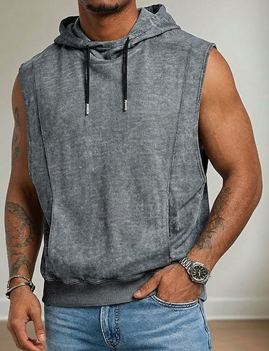 Męskie Bezrękawnik Bluza z kapturem bez rękawów Bez rękawów Kaptur Lato Wiosna Na każdy sezon Zabytkowe Codzienny Ściągana na sznurek Farbowane ubranie Codzienny Odzież sportowa Czarny Granatowy