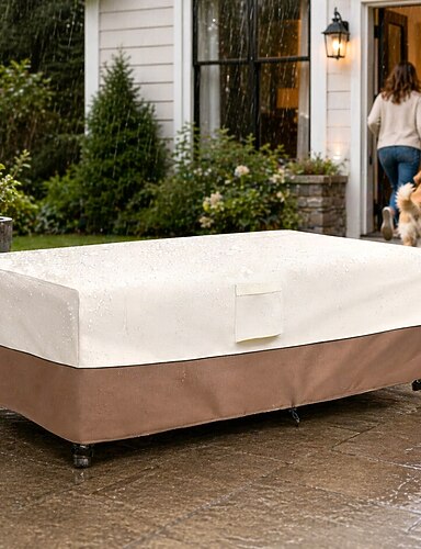 wodoodporny pokrowiec na meble ogrodowe, tkanina Oxford 420D, poliuretan powlekany srebrem, wodoodporny prostokątny na stół i krzesła, brązowy i beżowy