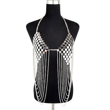 Metaliczne Odkryte plecy Błyszczące Koszulka damska na ramiączkach Łańcuszek na ciało Krótki top bez rękawów Dyskoteka Frędzel Strój na bal maskowy Damskie Karnawał Impreza Kij Doroślu Biustonosz