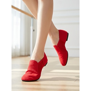 Damskie czerwone buty do ćwiczeń tanecznych, miękkie, wsuwane buty baletowe do jazzu i tańca współczesnego &próba studyjna
