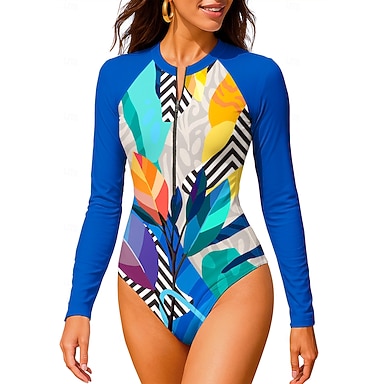 Damskie Skafander z lycry Strój kąpielowy Sportowe stroje kąpielowe Kwiatowy Tropikalny Zapiąć na zamek błyskawiczny UPF50+ Szybkie wysychanie Lekki Długi rękaw Koszulka do pływania Kostium kąpielowy