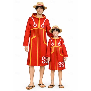 Ocean Adventurer Kapitan Pirat Słomkowy Kapelusz Anime Kostium Cosplay Stroje Garnitury cosplay Halloween Karnawał Bal maskowy Płaszcz Rękawiczki Kapelusz Na Dla chłopców Dla dzieci Dla dorosłych