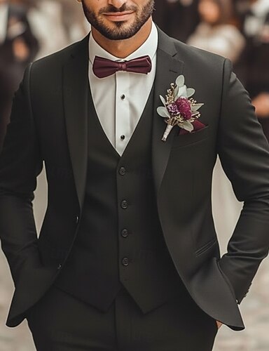 Męski Smokingi Garnitury biznesowe zimowy ślub Pół formalne Czarny Burgundowy Wiosna, jesień, zima, lato W kant Klapy wcięte Biznes Formalny Solidne kolory Dopasowana 3-częściowy zestaw Jednorzędowa