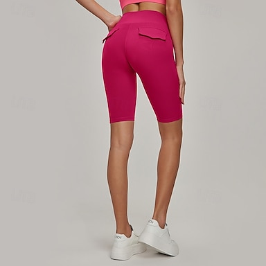 Damskie legginsy do pilatesu Spodnie sportowe Leginsy fitness Z kieszeniami Lekki Wysoka talia Pilates Siłownia Zumba Szorty Doły Jednokolorowe Czarny Granatowy Fuksja Sport Odzież sportowa Średnio