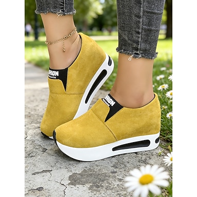 Żółte trampki damskie na co dzień – minimalistyczne, sznurowane buty za kostkę do noszenia na co dzień, spacerów i na ulicę