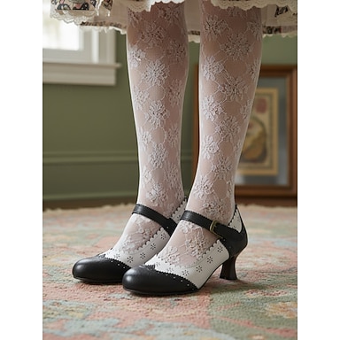 damska z lat 50. vintage czarna &białe buty typu „mari jane” – eleganckie brogsy z wycięciami na nogawkach, idealne na imprezy retro i wydarzenia akademickie &klasyczny kobiecy styl