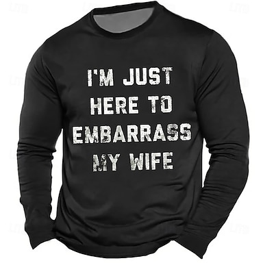 Męski Śmieszny T-Shirt z Grafiką - "Jestem Tu Tylko Po To Żeby Zawstydzić Moją Żonę" T-Shirt z Krótkim Rękawem