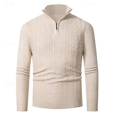 Męskie Sweter sweter Swetry z zamkiem błyskawicznym Sweter z dzianiny Kable Robić na drutach Zwykłe topy Dzianiny Równina Quarter Zip Moda Codzienny Urlop Dzienne zużycie Odzież Jesień Zima Czarny